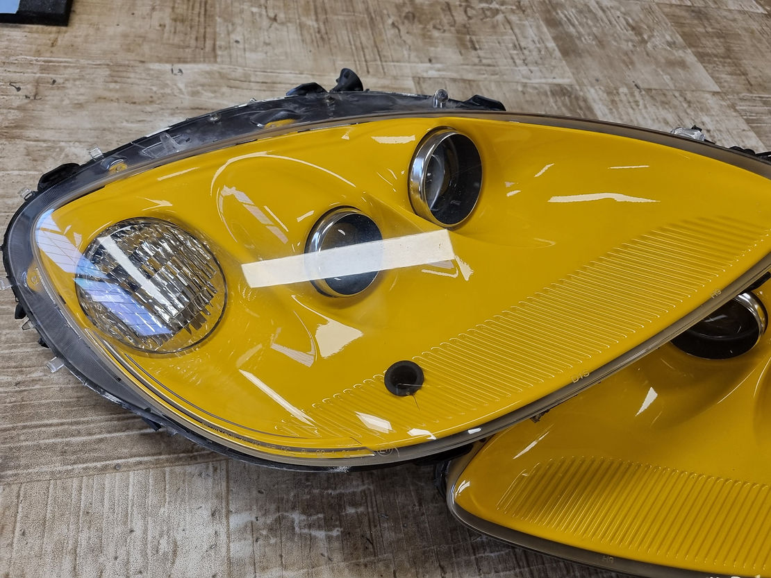 Wie bereits erwähnt, erwarb der Besitzer diesen fantastischen Sportwagen aus einem japanischen Reimport. Da in Japan Autos auf der linken Straßenseite fahren, war ein Austausch des Projektors erforderlich. Wir haben den Scheinwerfer fachgerecht und ohne Beschädigungen zerlegt und anschließend den Projektor durch ein neues Original-Werksteil ersetzt. Anschließend haben wir den Scheinwerfer wieder abgedichtet und abschließend die Dichtheitsprüfung durchgeführt. Der Umbau war perfekt und der Besitzer des Wagens fährt seitdem glücklich damit auf den Straßen Europas.